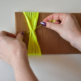 Tie the strings again. This holds the cords in place when you remove them from the board.
